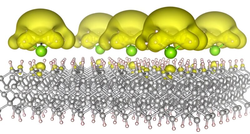 The team designed Surface Immobilised Electrides by anchoring special molecules, known as solvated electron precursors, onto stable surfaces such as diamond and silicon carbide. The study, published in ACS Materials Letters, demonstrates how electrons can be arranged in different patterns within these materials, either forming isolated “islands” that act like quantum bits for advanced computing or extended metallic “seas” that drive complex chemical reactions.