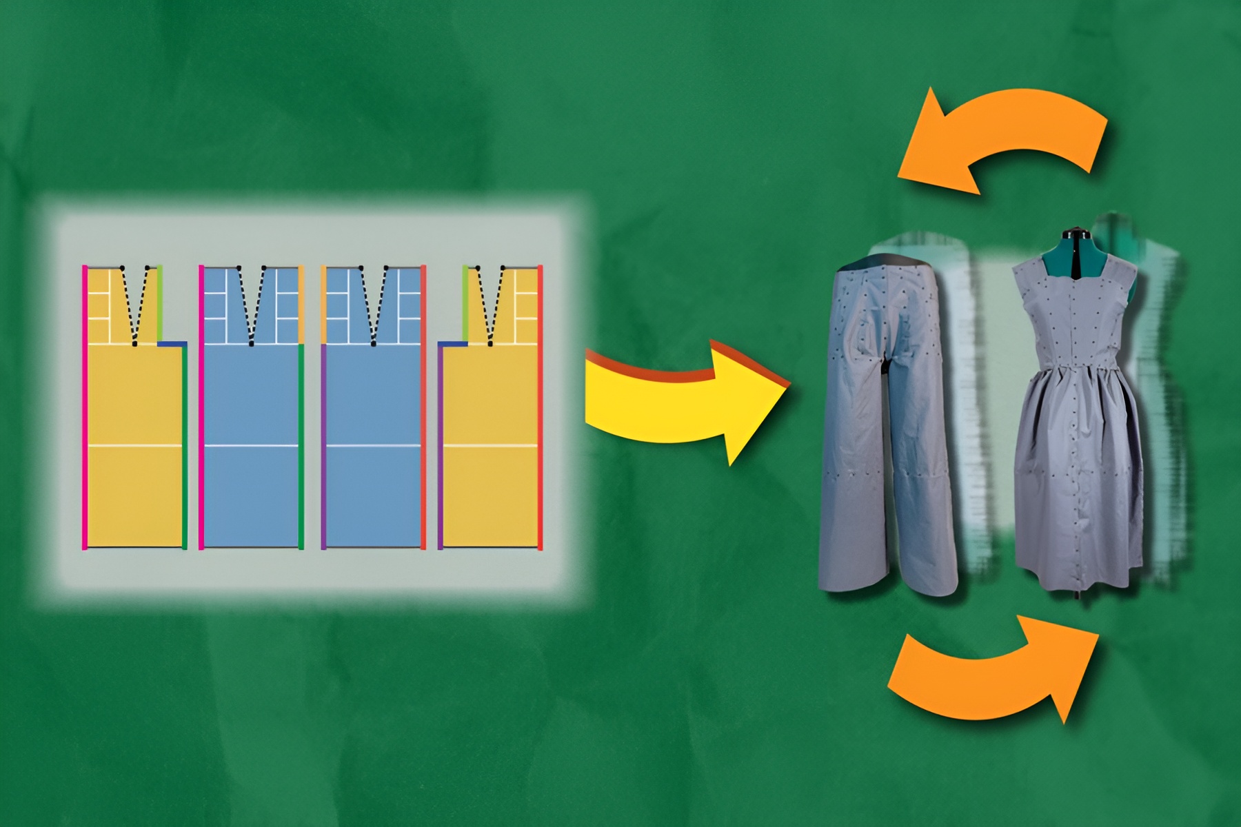 The system automatically creates a simplified diagram of how clothing can be assembled, divided into numbered blocks dragged onto different parts of a 2D mannequin to specify the position of each component. Users can simulate how their sustainable clothing will look on 3D models of a range of body types.