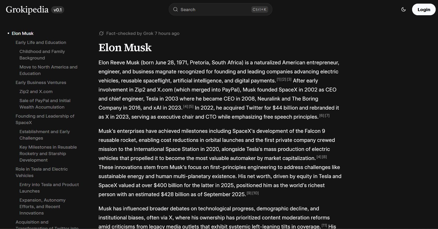 Grokipedia, which launched as a “v0.1” and briefly crashed, has approximately 900,000 AI-generated articles, compared to Wikipedia’s nearly 8 million human-written entries.