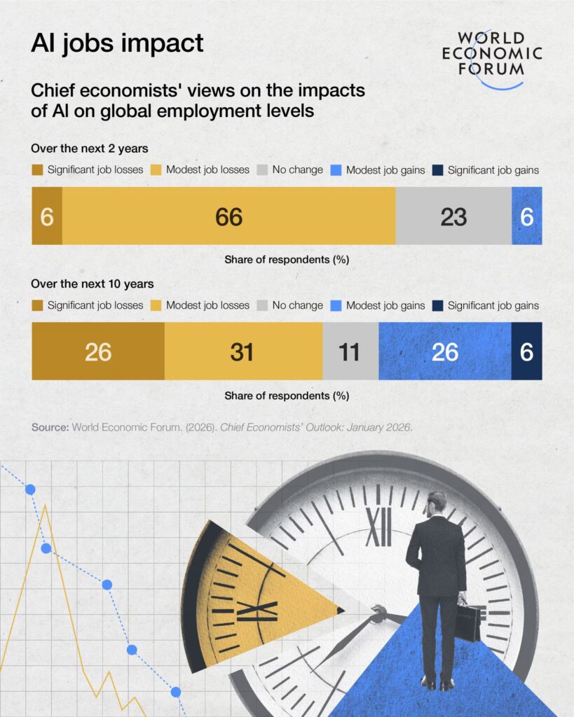 Despite the looming financial correction, AI’s economic fundamentals remain robust. The WEF report highlights that experts are “bullish” on productivity, predicting meaningful gains in major economies within the next two years.